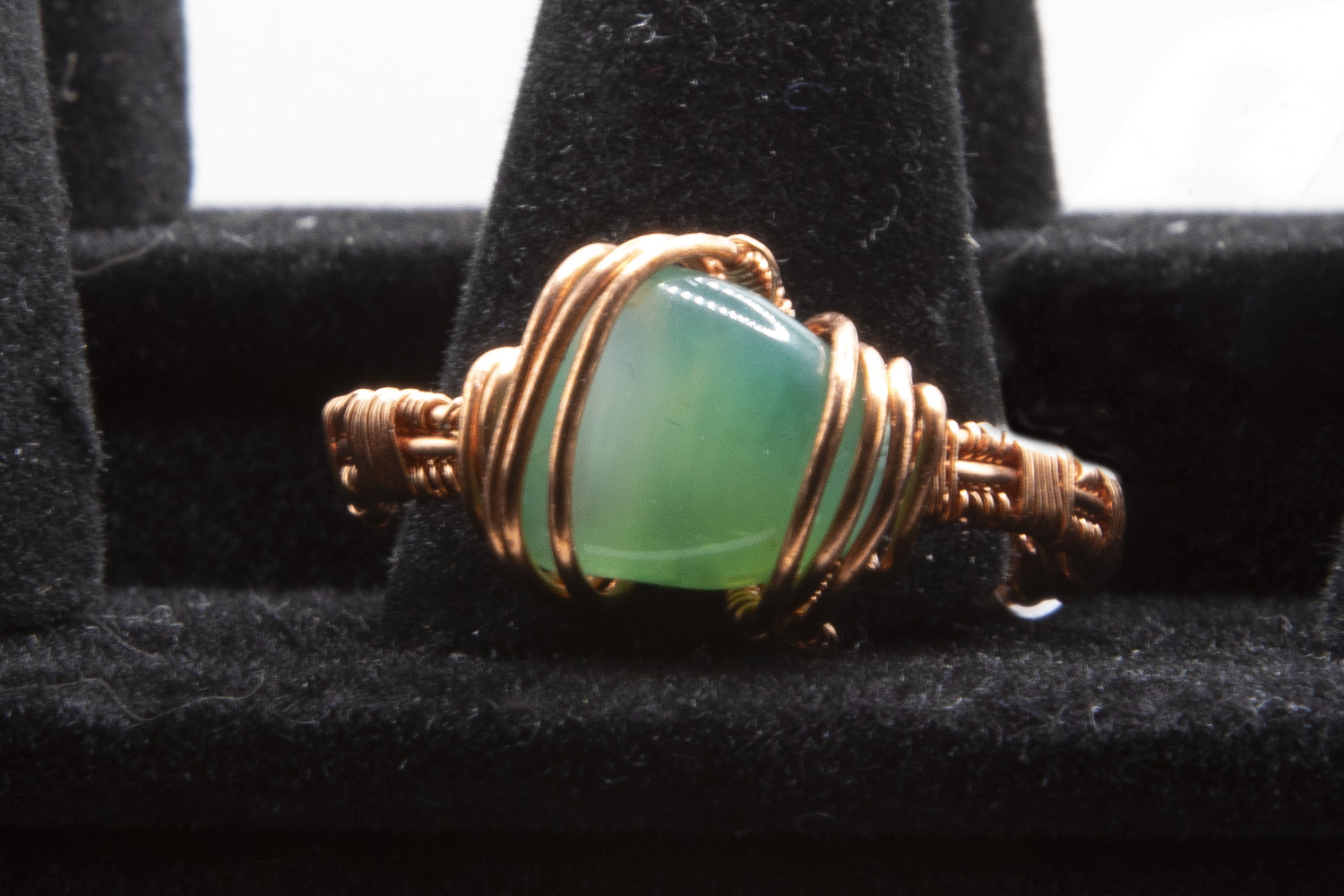 This exquisite Aventurine Stone Ring is carefully hand-polished and skillfully set in pure copper, showcasing a one-of-a-kind, intricate weave designed exclusively by us at Crystal Waves. Each ring is a unique creation, ensuring no two are the same. The combination of the natural beauty of the Aventurine stone and the detailed craftsmanship reflects the individuality and artistry behind every piece we create.