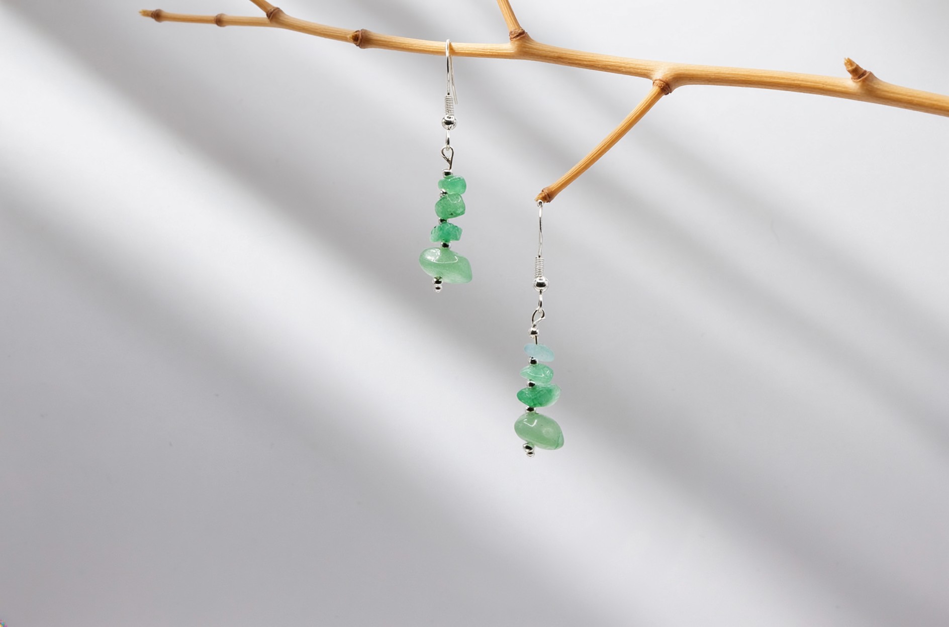 The minimalist wire-wrapped design keeps the focus on the stone, letting Aventurine’s soft shimmer and natural texture shine through. Lightweight and easy to wear, these earrings offer a grounded, free-spirited feel that’s perfect for everyday wear or a touch of boho polish on special occasions.