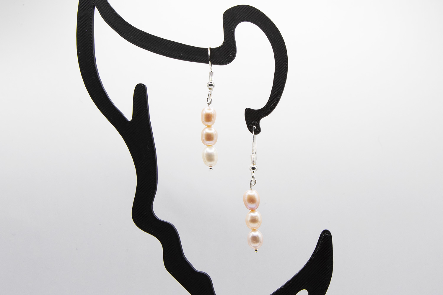 These handcrafted earrings blend timeless beauty with a free-spirited soul. Featuring luminous freshwater pearls suspended from sleek sterling silver hooks, they offer a graceful balance of natural elegance and effortless charm.