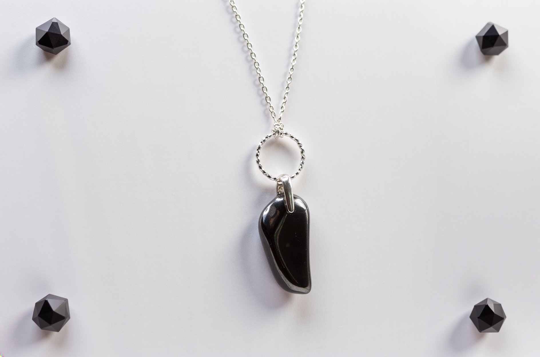 This one-of-a-kind necklace features a smooth, polished hematite stone, hand-set in sterling silver and suspended on a sleek silver chain. Carefully crafted by hand, each piece carries its own subtle variations—making your necklace as unique as your energy.