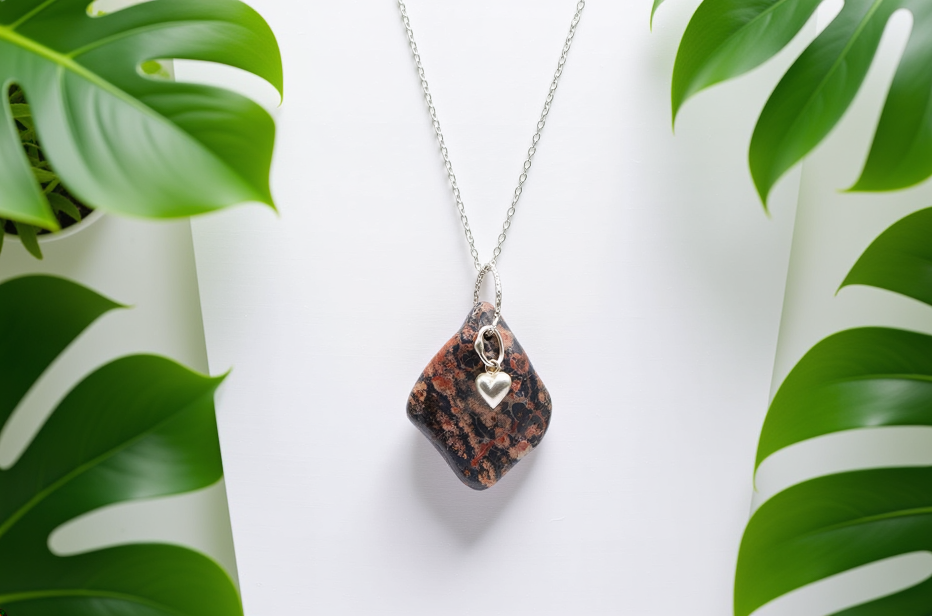 Be the first to review “Leopard Agate & Sterling Silver Heart Necklace”