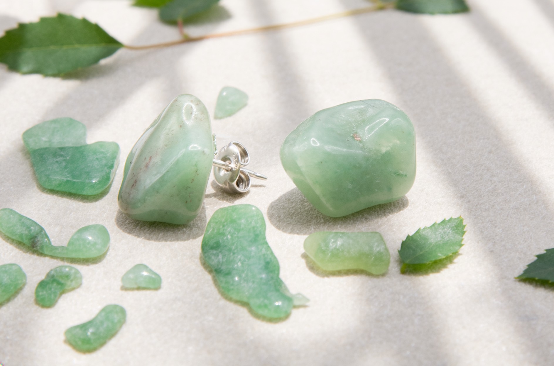 Delicate, earthy, and full of heart—these sterling silver stud earrings feature natural Green Aventurine crystals, lovingly hand-set by Crystal Waves. Each pair is one-of-a-kind, celebrating the organic beauty of the stone and the soulfulness of handmade craft.
