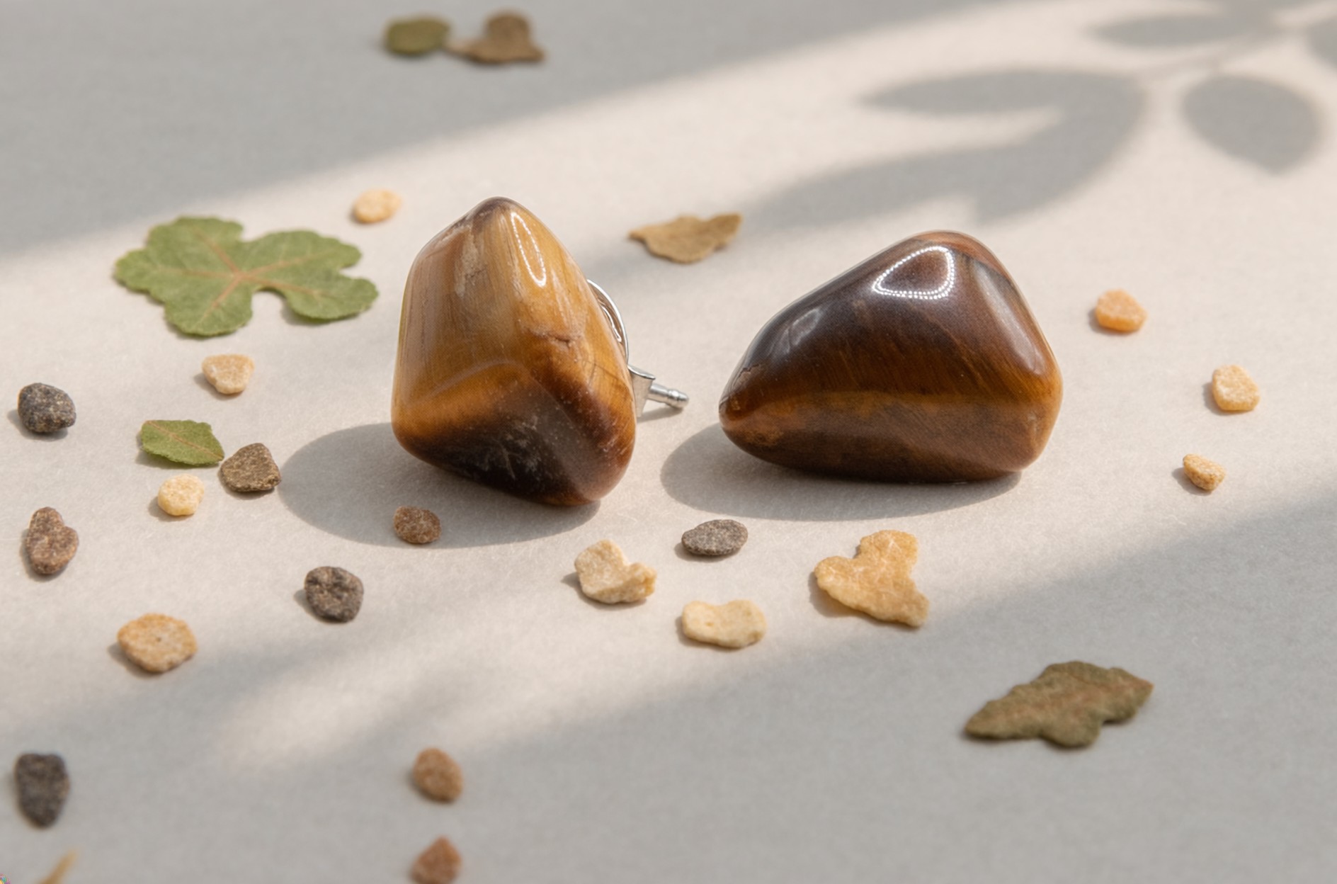 Simple, striking, and full of earthy magic—these sterling silver stud earrings feature natural Tiger’s Eye crystals, hand-set with love and care by Crystal Waves. Each pair is handmade, making every stone as unique as the soul who wears it.